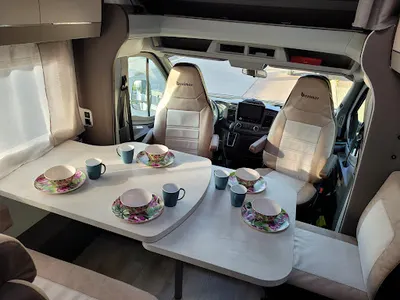 - Świetne wyposażenie kampera we wszystko potrzebne (naczynia, krzesła, bagażnik rowerowy, klimatyzacja postojowa)